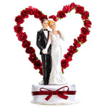 Tortenfigur "Brautpaar im Blumen-Herz" weiß/ dunkelrot