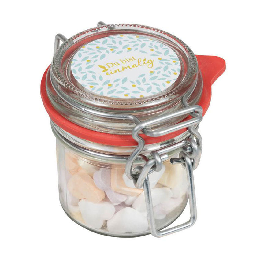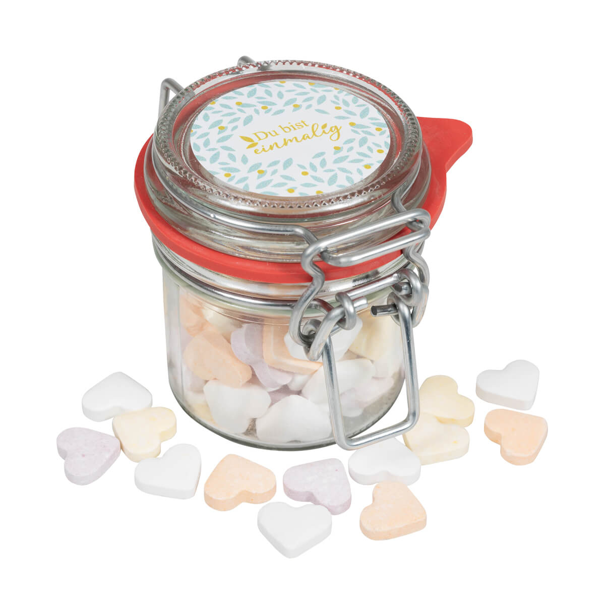 Traubenzucker Herzen im Mini Weckglas "Du bist einmalig" 75g