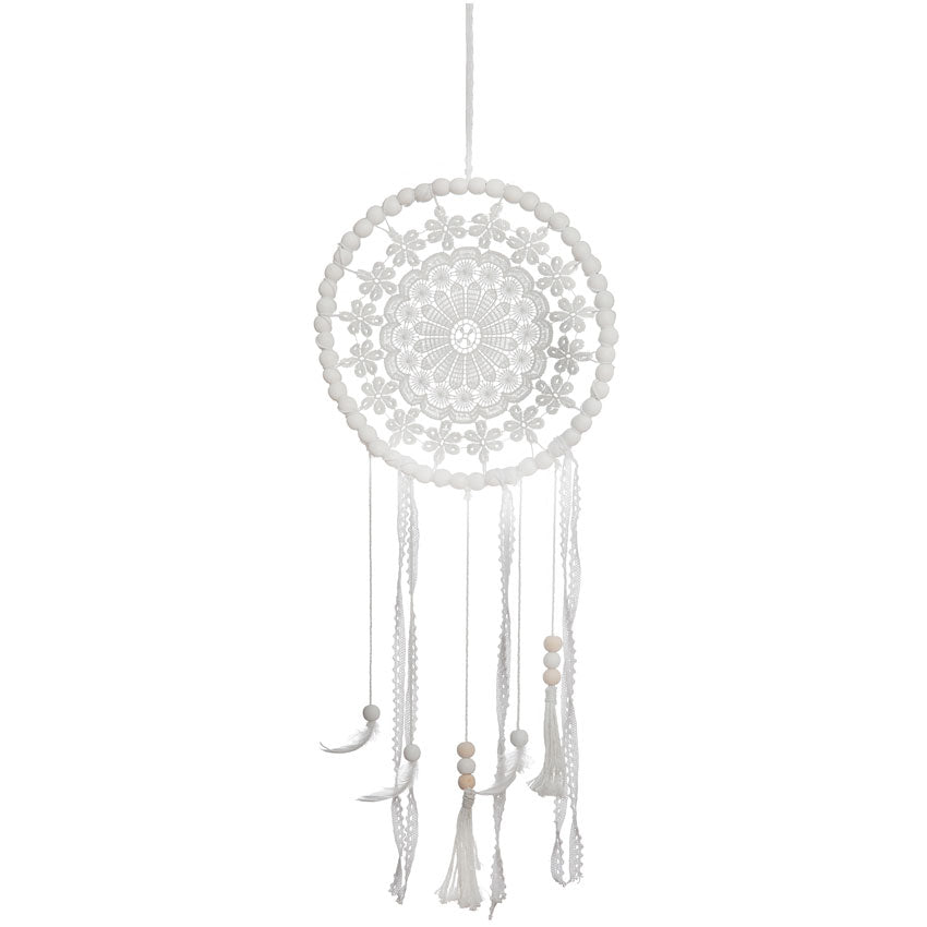 Dieser Traumfänger bewahrt Sie nicht nur vor Albträumen, sondern ist durch seine wunderschöne Häkelspitze im floralen Muster und die zarten Spitzenbänder auch sehr dekorativ.