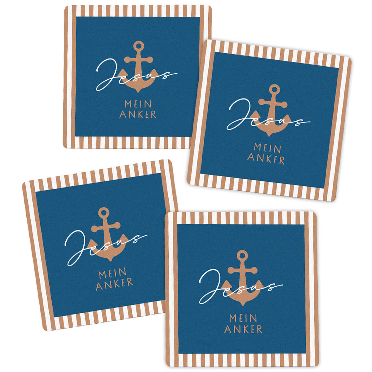 Vier Untersetzer mit Anker-Motiv "Jesus - Mein Anker".