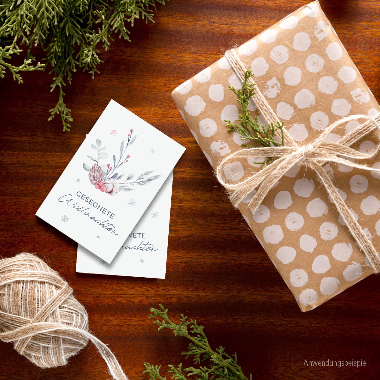 Die schönen Weihnachtskärtchen mit Weihnachtsmotiv "Gesegnete Weihnachten" sind ideal, um die Geschenke für eure Liebsten zu schmücken. Einfach lochen und mit einem hübschen Band ans Päckchen binden. Praktisch im 10er-Set verpackt.