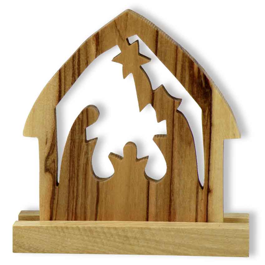 Handgefertigter Weihnachtsschmuck aus echtem Olivenholz aus Bethlehem/Israel.Schönes Krippenmotiv, verschönert Ihren Weihnachtsbaum in der Adventszeit.