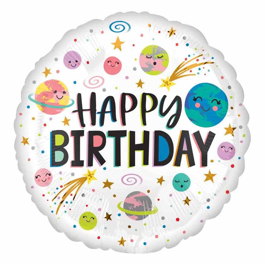 Weltraum Party Deko Folienballon "Happy Birthday" weiß