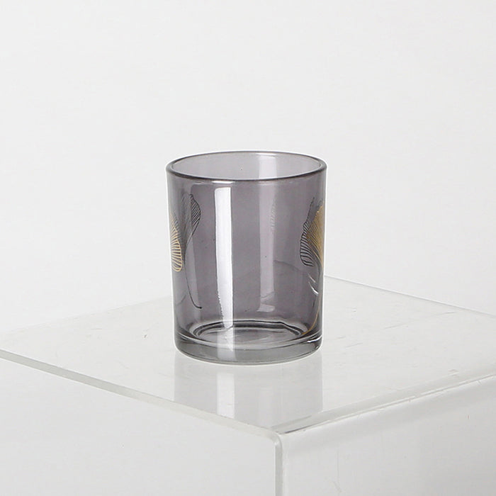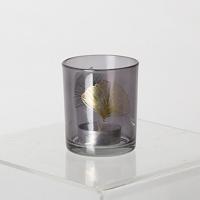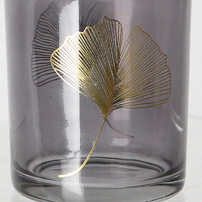 Windlicht Rauchglas mit goldenem Ginko Blatt 8cm schwarz gold